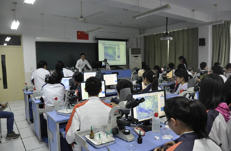分校老师高度评价了taptap生物实验室"高、大、上"的数码显微系统,做到了初高中每位学生一台数码显微镜,高中学生外加一台联网电脑,使得每位学生的实验观察结果能让全班同学共同分享,同时通过显微摄像将实验观察图像的作业上传给老师。先进的实验设备更激励我们老师更新课堂设计,用灵活多样的教学方法激发学生学习生物学的兴趣。