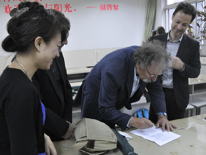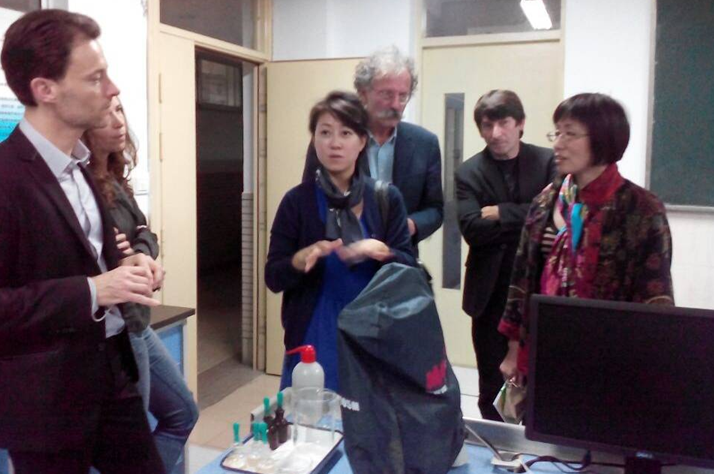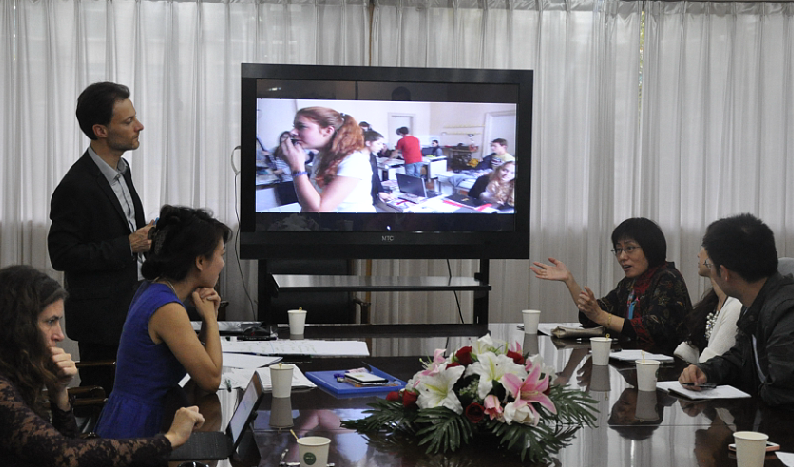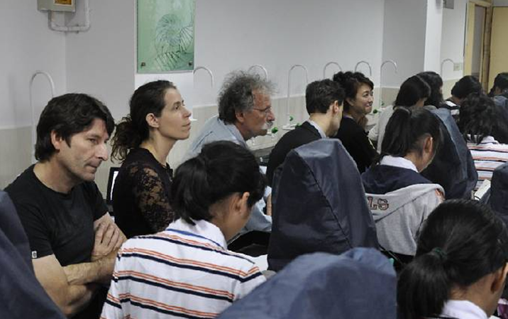 2014年10月法国斯特拉斯堡教会学校一行6人来访taptap,21日上午与taptap生物组老师进行了教学交流。首先由法方的生物老师Philippe Rebischung 介绍法国中学生物教学各年级的教学要求和课程安排,再通过一堂Tale班级(相当于我国高三毕业班)的生物课课堂教学实录,以及一个概念"基因与遗传"的教学过程说课,来展示法国学校生物教学的特色。下午参观taptap的生物实验室,并参与了taptap与仙林分校和河西分校三校生物组联合课堂教学研究活动,听了两节taptap生物实验课,一节初一,一节高三。课后一起参与了评课讨论。