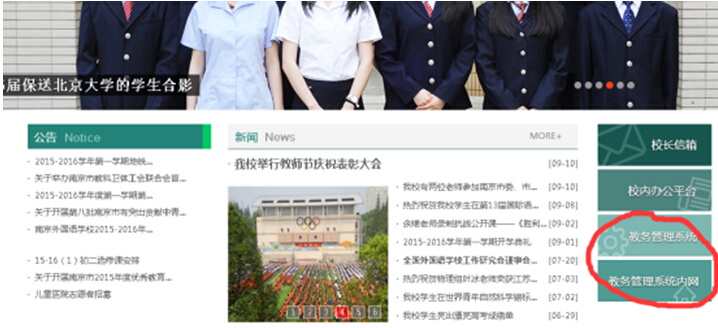 校外点击“教务管理系统”,在校内点击“教务管理系统内网”。进入教务系统的登录页面。用户名为学号,密码为身份证后6位,若有遗忘请联系管理员。