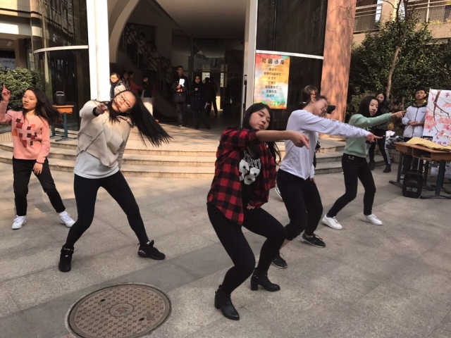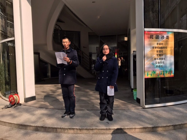12月15日中午,旋转楼梯旁聚集着里三层外三层的同学,在这里,taptap2016-2017学年社团沙龙活动正开展得如火如荼。瑟瑟寒风一刻不停地吹,却没有吹熄同学们内心的火苗,他们组织有序地依次上场,把精彩而别致的演出呈现给所有老师同学,也呈现给冬日的南外。