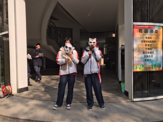 此次社团沙龙活动,极好地契合了艺术节“风、雅、颂”的主题;同时它作为继社团招新之后第一次多个社团的巡礼展示活动,也完美地展现出各社团风采。首先上场的手绘社,在两位心灵手巧的社长的带领下,现场绘制了古风面具,为沙龙增添了一份手工艺的艺术气息;交响乐社紧随其后,他们用全新的编曲和缠绵至深的音乐,演绎出一版独特卡农故事;接下来的彩墨社,用书法和彩墨元素结合的书签,记录下南外的故事;而此后的国风社和文学社,则联手把《烽火戏诸侯》这则故事改编并表演到极致,以紧凑的情节和到位的演技赢得阵阵掌声;艺舞社不甘落后,两首充满活力的歌曲搭配上女生优美曼妙的舞姿,配合得天衣无缝;紧跟着上场的折纸社用一张完整的纸,不剪不拼,竟折出“风雅颂”的字样;最后压轴的国乐飘香社则秉承着南外大社一贯的风度风采,改编一曲《菊花台》,使其与民族乐器完美融合,乐而不淫,哀而不伤。