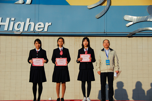 彭:下面有请邹校长为江婉婷、赵珺瑞、王心怡颁发由校基金会赞助的5000元校长特别奖学金。