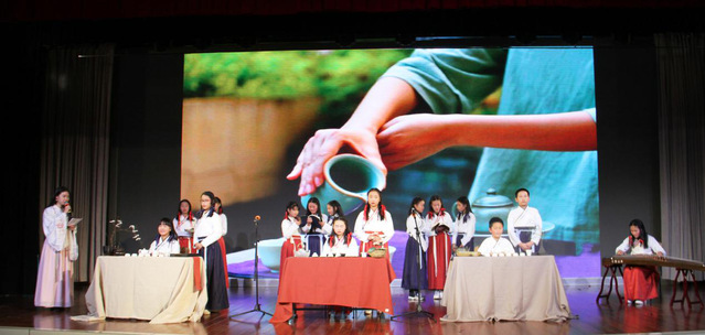 5班同学带来的《茶礼表演》温婉娴熟、行云流水,让大家沉浸在醇厚的茶香之中。