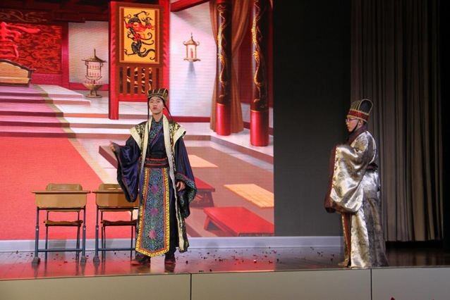 3班的《蒋干盗书》、8班的《三打白骨精》、2班的《昭君出塞》和10班的《空城计新编》,巧妙地将历史故事古剧新编,诙谐有趣、各有精彩,嗨翻全场,令人拍案叫绝。