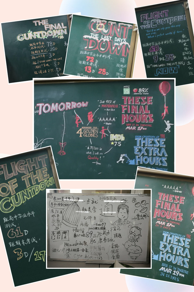 在积极向上的7班大家庭中,我们团结友爱,一致向前,获得了校足王杯冠军、校运会团体总分年级第三、外语节年级文艺汇演第一等好成绩。班级中多位同学获得国家级大奖,多位同学入选校辩论队、足球队、排球队等。在小高考冲刺阶段,我班还设立了独具特色的倒计时黑板报,给紧张的学习生活增添了一抹靓丽色彩。现在,我们班39名同学兵分两路,20位选择大学阶段出国留学,19位同学选择在国内继续学业。但我们都拼尽全力,奋发进取,挑战难题,发掘潜能。待到来年发榜时,定将收获不负卿。让我们一起期待高二(7)班39位同学胜利会师的那天!