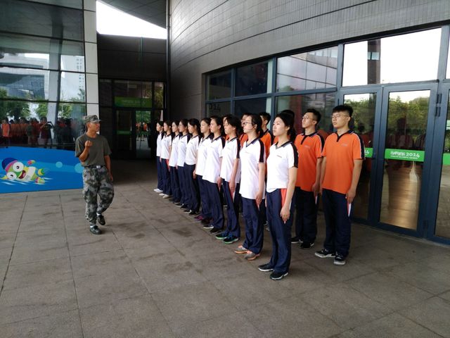 军训的第二天在蒙蒙细雨中展开,昨天的疲惫并没有打垮同学们军训的热情,年级组长许亮亮老师上台给大家加油打气,鼓励同学们克服困难、磨练意志,台下掌声热烈。今天进行了分组训练,除了常规的队列训练外,有些同学被分到了拳术方阵、女生队列操方阵等进行专项训练。伴随着大家在各自方阵刻苦操练,雨势也渐渐大了起来,仿佛在给同学们加油助威。经历了昨日的酷暑和今日的淋雨,不少同学感到身体不适,但都咬牙坚持训练,基地也贴心地给同学们准备了姜汤,驱散了一些湿气。午休后,同学们在报告厅聆听了国防教育讲座,精彩的讲座不仅让同学们了解了国际形势,也激发了大家的爱国之心以及拼搏的斗志。在接下来的拉歌活动中,大家积极踊跃,军体拳方阵声音洪亮,打靶归来的歌声响彻全场!虽然训练艰苦,但也充满了收获和乐趣,这就是今天军训的新发现!