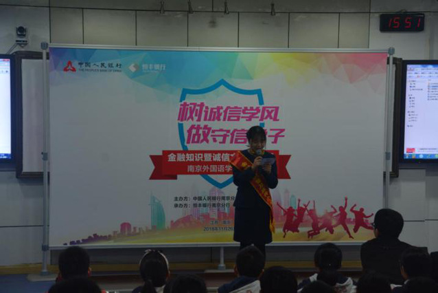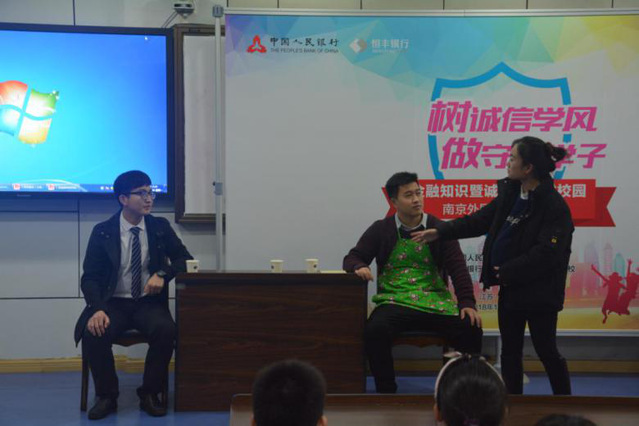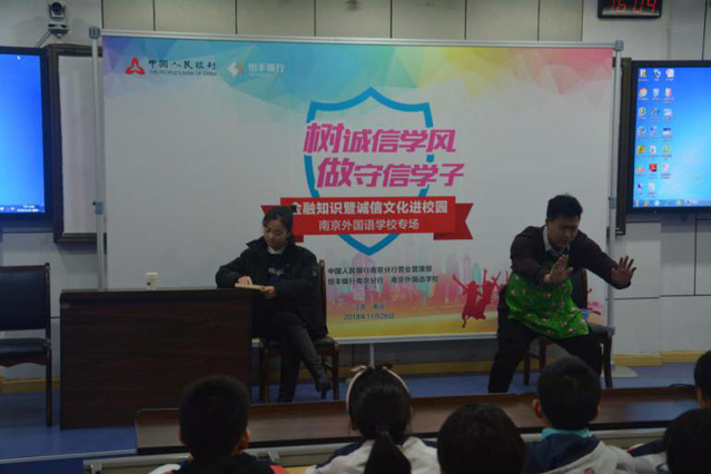 2018年11月26日星期一,中国恒丰银行南京分行的几位老师给南外初二(10)班和初二(12)班上了一节生动的金融基础课。