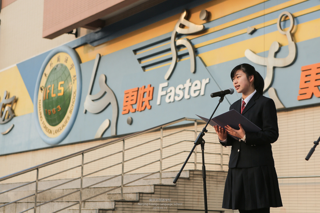 姜:我是来自高三(8)班的姜浩远。今天的晨会由我们为大家主持。