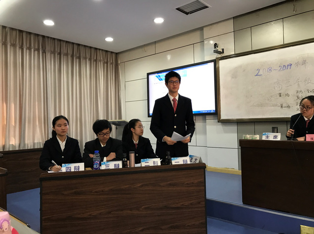 2019年4月1日下午14:45到16:30在E二、三楼阶梯教室,高二年级举行五四辩论赛。继高一年级五四辩论赛以后,高二年级的各位辩手们也奉上了思维碰撞,丰富多彩的比赛。因需要从高二年级选拔参加南京市辩论比赛的选手,所以比赛采用了今年南京市比赛的规则,比赛流程共分为:陈词、质询、质询小结、自由辩论、总结陈词等十三个环节,更加考验选手知识储备、临场反应及表达能力。