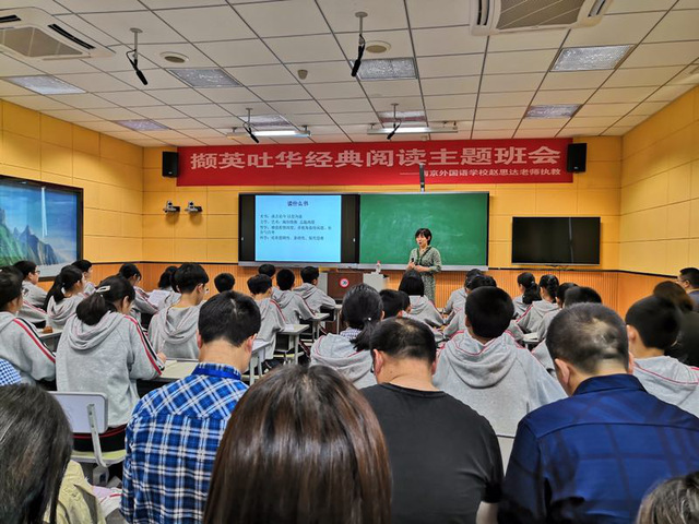 随后,taptap赵思达老师给初一(6)班的同学们开展了一场“撷英吐华、经典阅读”的主题班会。万州教师进修学院、南京中学所在教研片区10所中学的德育管理团队现场观摩了这节班会课。