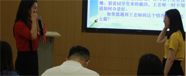 在充满理性和感情的班级文化建设风采展示环节后,紧张的教育情景现场问答开始了。每位选手现场抽签,稍作准备后,随即在现场分析情境中存在的问题,并提出解决问题办法,或者请助演一起进行情境模拟,简述理由,并回答了评委专家们的提问。在此环节中,各位选手自信从容的风度、清晰富有条理的表达、回答提问的迅速和精彩不时赢得现场热烈的掌声。