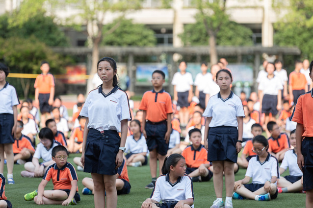 22日下午三点三十分,在灿烂的阳光下,在前来参观的家长们的注目中,随着邹正校长一声“按程序进行”,由来自初一1班的是欣怡和初一2班的陆泓旭两位同学主持的2019级初一新生入学教育汇报表演正式开始。