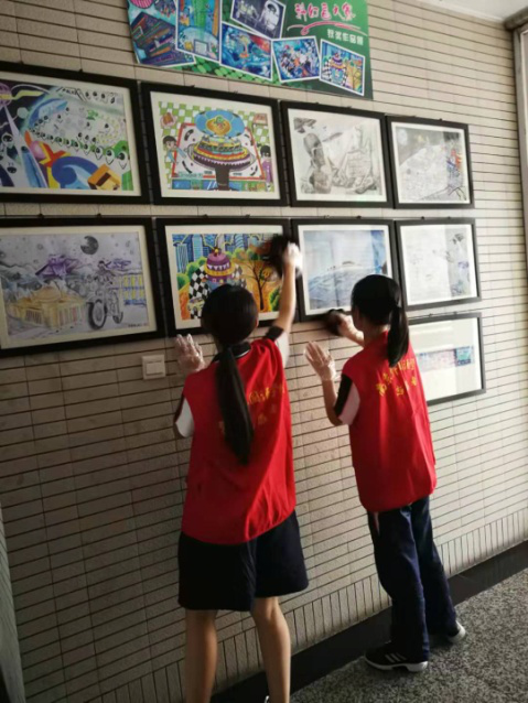 我们被分散在校园的各个角落,有在教学楼内的,也有在教学楼外的;有挺拔地站在大门口的,也有弯腰擦拭桌椅的。我们虽然岗位、职责不同,但相同的,是那股认真的劲儿。有的同学结伴而行,共同擦拭着形状各异的栏杆,看起来工作量不小,但几个人合作,一会儿就完成大半任务;有的同学在操场旁清理;还有的同学在门口站岗……走到他们身旁,看到的,大多是他们认真工作的身影。