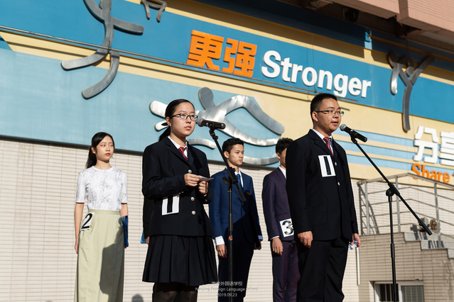 首先进行演讲环节。2019年10月1日,我们将迎来中华人民共和国70周年华诞。请每一组候选人以“少年向新中国成立70周年”为主题,进行2分钟的演讲。下面请三组候选人按照抽签顺序进行演讲。掌声有请。