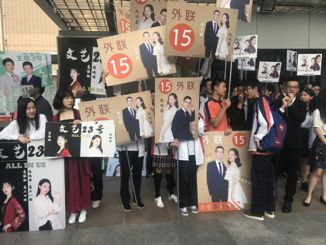 9月16日班会课上播放各组候选人的竞选视频,用最具艺术性与动感的方式给大家展现了各组候选人的才能。同学们都对候选人的样貌、才能有了更进一步的了解,也许从此刻就对自己的“心动人选”有了数。