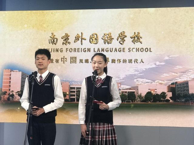 初一年级的老师们,鼓励刚进校的小同学,捧起到南外来读的第一本英文书,以书为乐,与书为伴;初二年级的同学们在优美的音乐背景下,朗诵英文诗歌,以诗会友,以声动人。