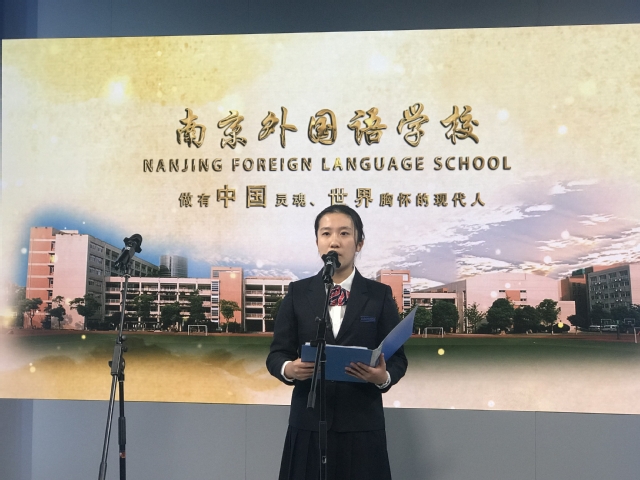 先别急,taptap一直开展的是外语读书节,现在我们有请高一德班的冯宇瑄学姐作为小语种班级的代表,带来她的演讲。