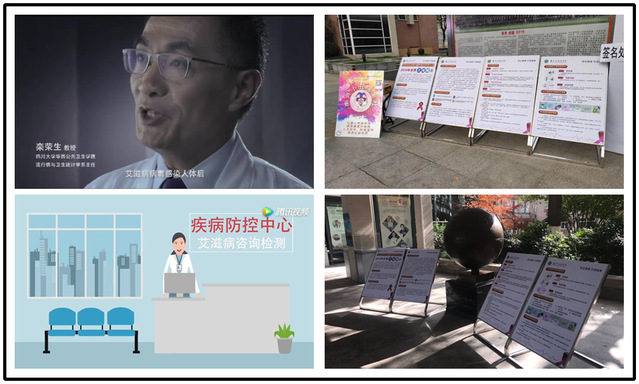 (1)利用学校电子屏播放健康宣教短片,在校门口及大厅设置宣传展板等,宣传本次世界艾滋病日的主题: