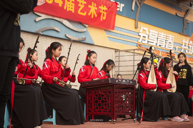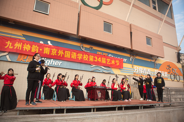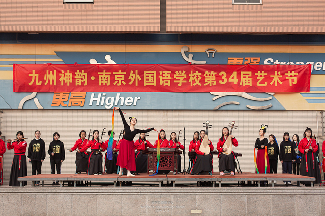 本届艺术节的主题是“九州神韵”。身在校园的你我,可以在日常生活中拥抱历史、拥抱艺术,通过音乐、舞蹈、动漫、文创等各种方式,传播九州之美,传承九州文化,让九州艺术绽放出现代的神韵!随后大家将欣赏到的表演就是我们南外学子用独特的方式让古乐绽放出新时代精神。