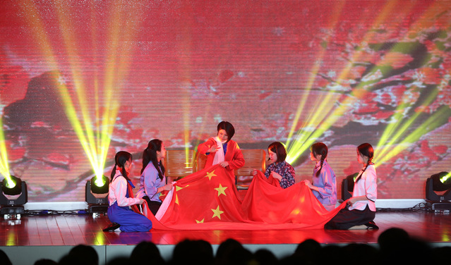 为了更好的烘托舞台效果,大家还一起动手查找了大量的图片和音乐资料,在老师的指导帮助下,对舞台音乐和背景大屏进行设计,收到了良好的效果,增强了舞台艺术感染力。随着大屏上红梅的徐徐绽放,在委婉动听的《红梅赞》音乐声中,全场观众都受到了强烈的震撼和灵魂洗礼——这就是英雄先烈们所具有的坚定理想信念、巨大人格力量和浩然革命正气!