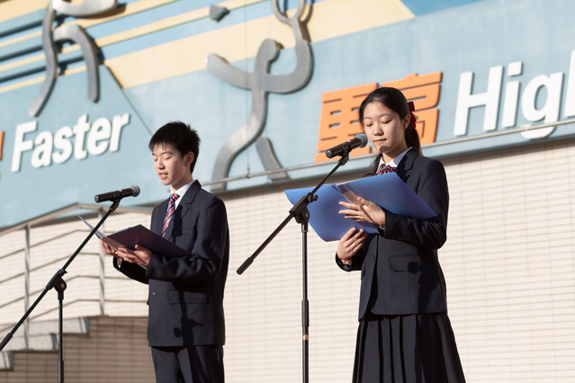 大家好,我们是本次晨会的主持人,高一(2)班 胡崔璨,高一(5)班黄启恒。
