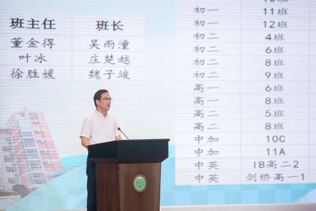 一代人有一代人的长征,一代人有一代人的担当。新学期有很多的挑战、考验以及收获和惊喜在等待着大家。在南外这样一个充满无限机遇、梦想、汗水与奋斗的“精神家园”,我们要永葆志气、炼就骨气、夯实底气,我们要更加的自尊、自重、自律、自强。在新的学年让我们树立信心,拿出卧薪尝胆、奋发图强的精神,共创美好的未来。谢谢!