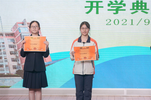最后,上学年获得五星称号的高中社团和初中俱乐部的负责人上台领奖。党委刘前树书记和纪委吕燕书记分别为五星社团和五星俱乐部颁发奖牌。