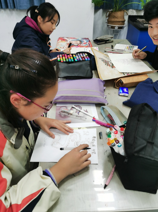 油画、彩铅、水彩、马克笔……各式各样的画作层出不穷。同学们各怀绝技,绘制出一幅幅令人叹为观止的作品,比赛现场犹如神仙打架。