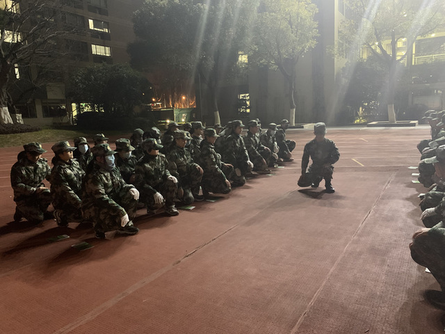 晚饭过后,天色渐暗,但是我们的体能训练才刚刚开始。大家顶着寒风走到操场上列队站好,等待教官指示。有的连队练习了平板支撑,有的连队练习了如何喊出响亮的口号,也有的连队则在教官的指导下学习了正确的下蹲、跨立和稍息等姿势。每当大家要坚持不住的时候,教官们就会用自己充满激情的语言来鼓舞士气,激励大家继续保持笔挺的姿势。我们三连的教官个子并不壮硕,但是他的激情和对组织纪律的重视令大家肃然起敬。特别值得一提的是,尽管寒风一直都在挑战同学们的极限,也没有人提出放弃,因为大家都知道,这一次军训是对我们爱国主义的教育,是对我们毅力的挑战,也是对我们精神体魄的重要磨炼。